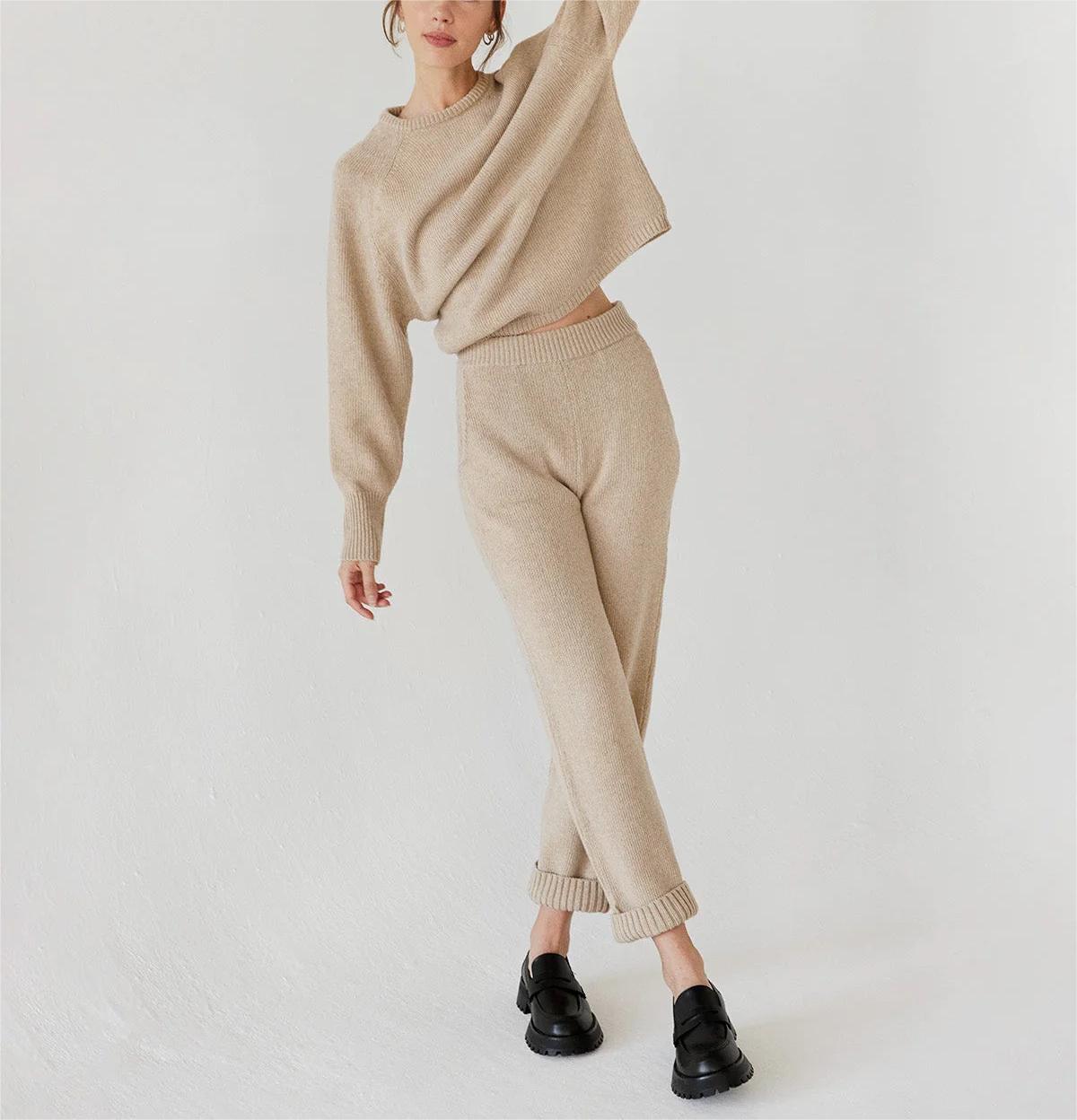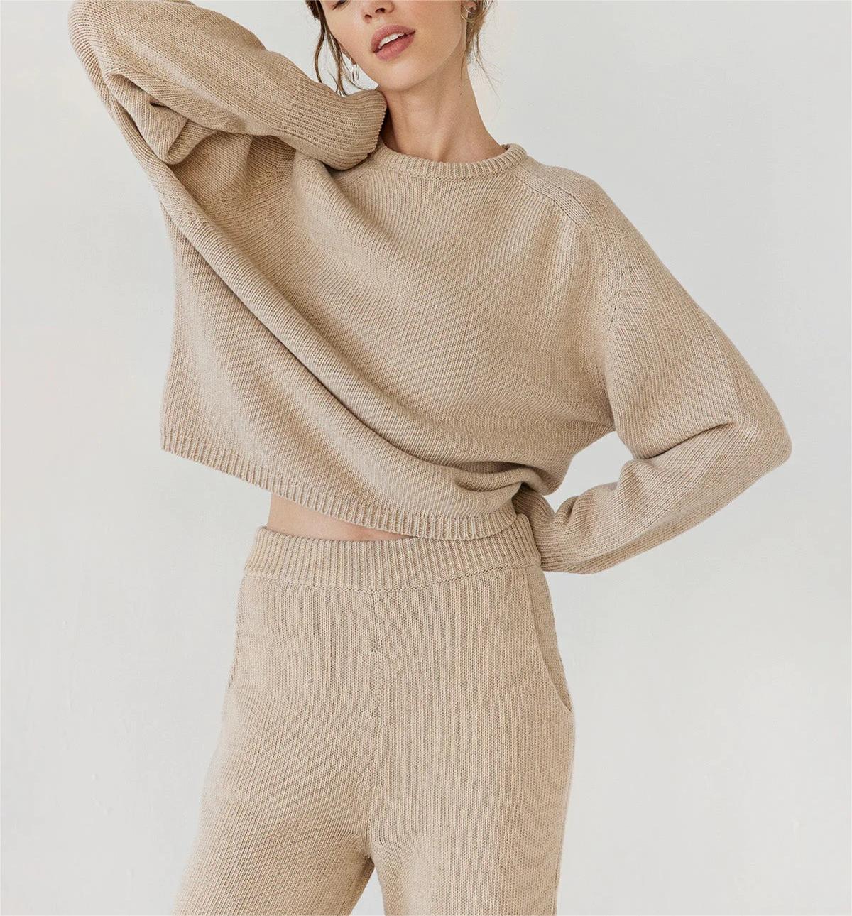 Description | crew neck women cashmere sweater pants set | ||||||